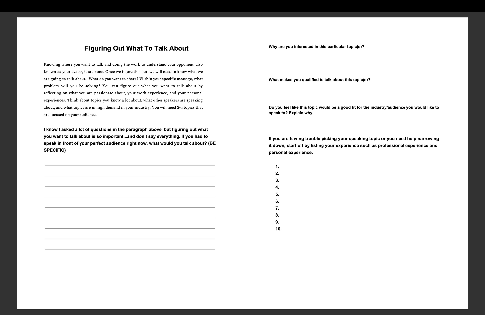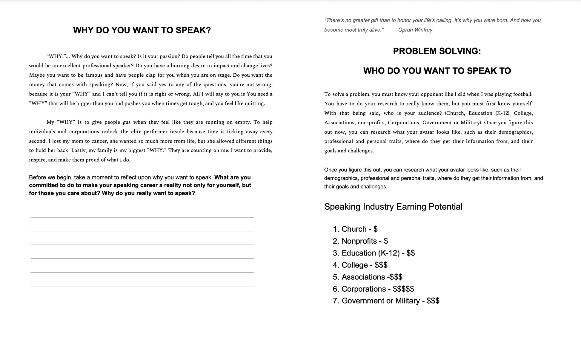 Gametime Excellence: Your Speaking Playbook (eBook + Workbook) is your interactive guide to launching a powerful and profitable speaking career.